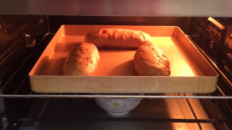 12. 放入烤箱中进行二次发酵,开启烤箱发酵功能,发酵温度设定35度,记得在烤箱底层放一碗温水增加湿度。