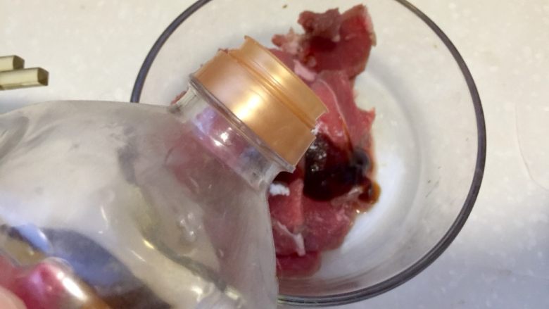15. 加入少许食用油,拌匀,包裹着牛肉