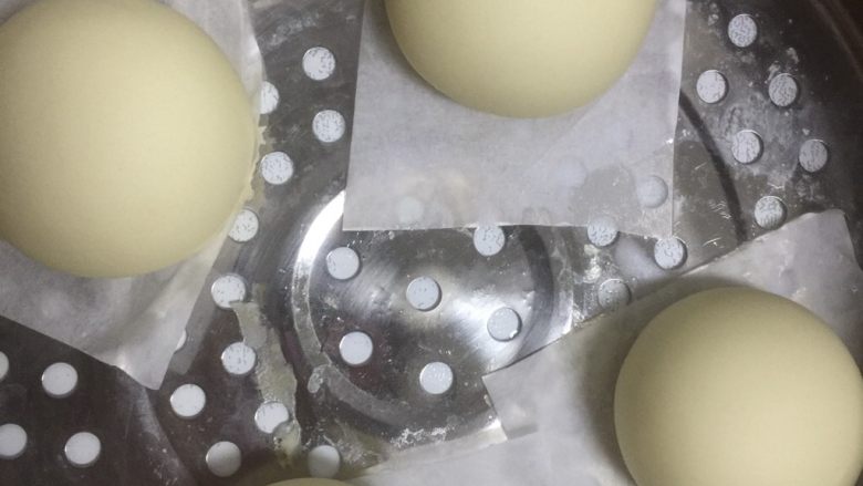 5. 全部整形完毕后,移至蒸锅,温水发酵,注意蒸锅里面温度和湿度,发酵至按压面团表皮回弹即可,时刻观望,不要发过