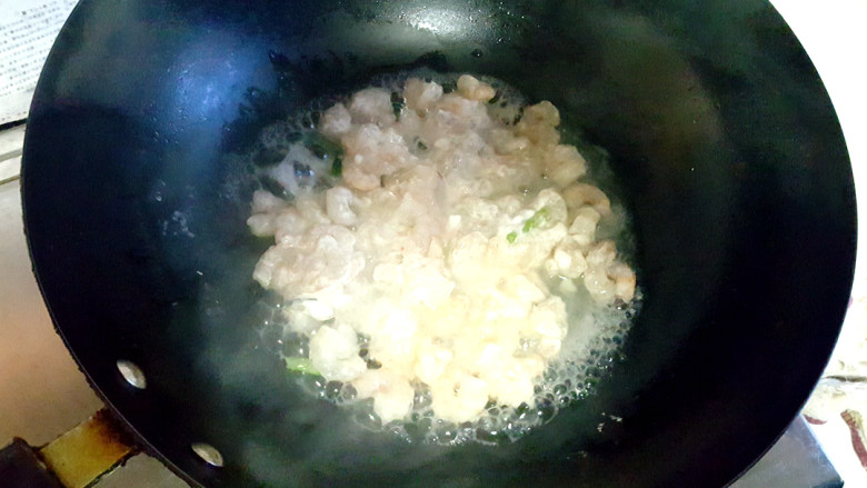 17. 最后,把虾仁和蛋清一起放在锅中。