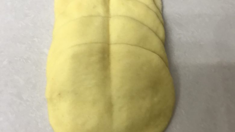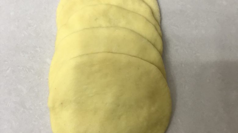 16. 取一个面团用手掌按扁