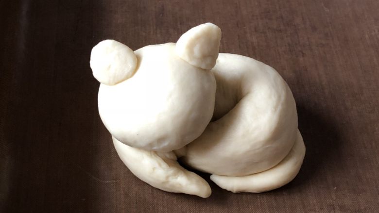 13. 耳朵1.5g、头30g、尾巴4g,剩下的都做身体70g左右 盖上保鲜膜松弛20分钟