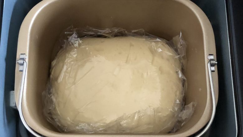 9. 整理铺平,盖上保鲜膜松弛静置5分钟,让面团休息一下,再打开发酵功能50分钟左右