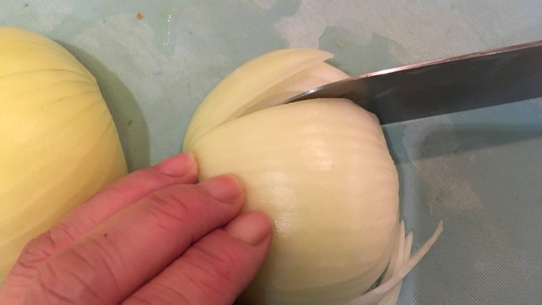 12. 倒少许油热锅炒洋葱,炒至呈半透明状。