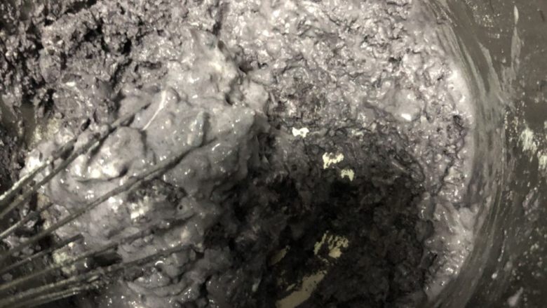 14. 倒入6寸的蛋糕模具,抹平表面震出大气泡