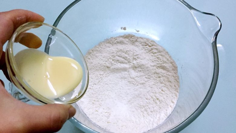 13. 平底锅加热至六七成热时,用勺子舀一勺从中间滴落成圆形