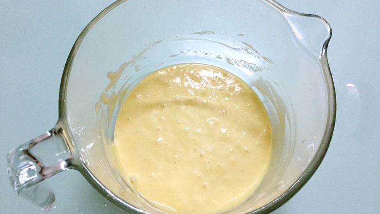 10. 用电动打蛋器打发至蓬松发白,提起打蛋器滴落时纹路不易消失即可
