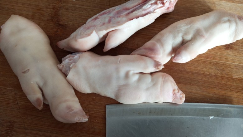 14. 放入猪蹄中火煮开后小火慢煮到猪蹄软糯,关火浸泡让猪蹄入味