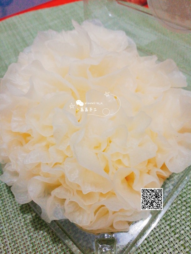 4. 切半朵银耳,洗净,撕碎