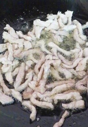 6. 锅里放油,放入腌制好的肉丝滑炒