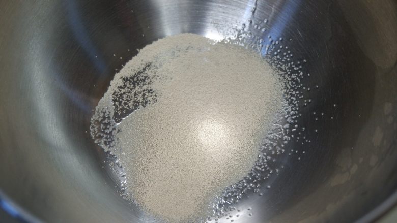 2. 然后将面粉加入,先用筷子搅拌成面絮,在揉成光滑的面团,盖上保鲜膜发酵至2.5倍大。