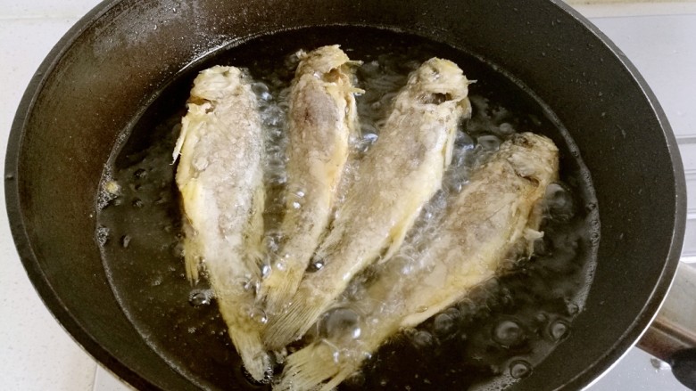 15. 第二次炸鱼,当油温再次升高的时候,把鱼放进去,再复炸一次。
