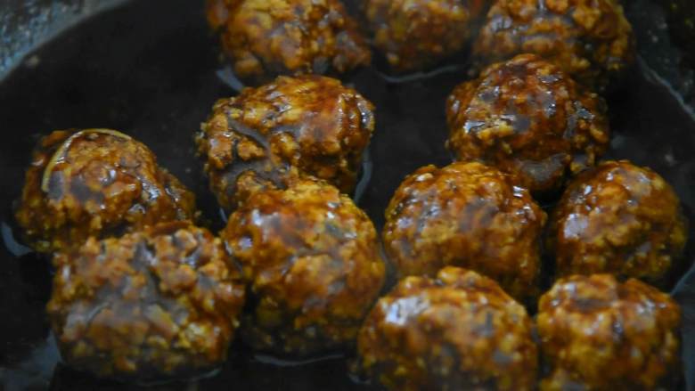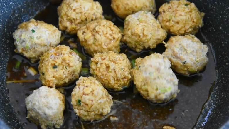 7. 倒入酱汁,把丸子放入锅中