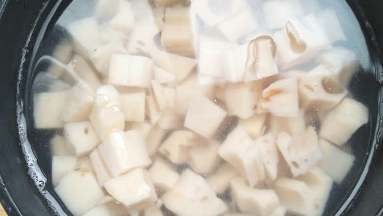 3. 将莲藕放入水中浸泡,防止氧化变黑。