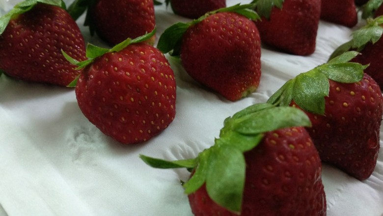 1. 草莓洗净,用厨房纸巾吸干水份。
