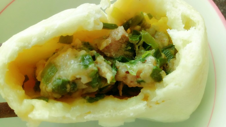 韭菜鲜肉大包子,然后放入切好的<a style='color:red;display:inline-block;' href='/shicai/ 116'>韭菜</a>末