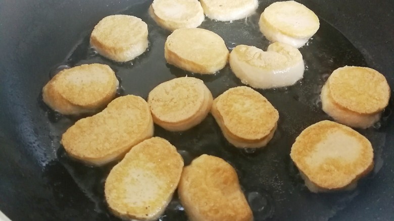8. 一年煎至金黄色换一面,煎至两面金黄色关火