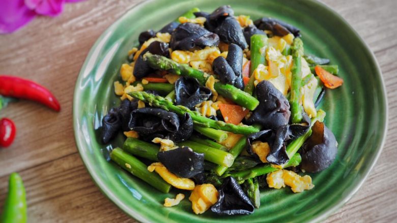 芦笋享有“蔬菜之王”的美称,具有调节机体代谢,提高身体免疫力的功效,在对高血压、心脏病、白血病、血癌、水肿、膀胱炎等都有很好的辅助疗效。 木耳有“素中之荤”的美称,经常食用木耳对高血压、动脉硬化患者有良好的效果。 这两种好东西不用多说啦,经常变着花样做着吃就好啦!