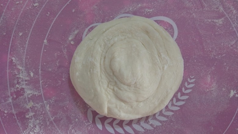 3. 取一块,擀成圆,一圈圈往外扩,用力轻柔。