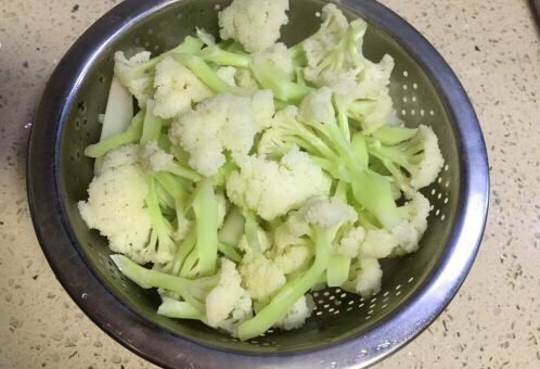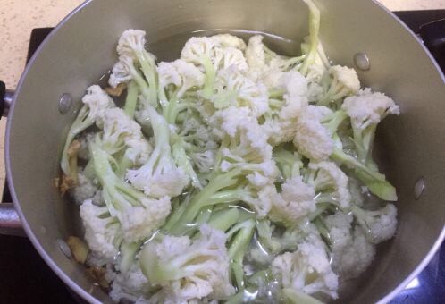 4. 水开后放入花菜,水再次开后一分钟将花菜捞起