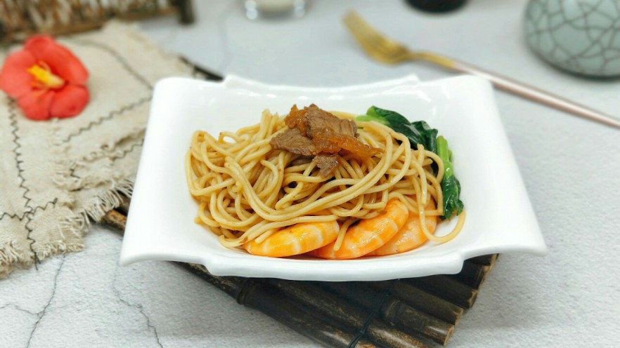- 面条一定要先煮,之后拌油,再晾干,炒面最重要的就是面。 喜欢吃辣的可以加一些辣酱或者油辣子。