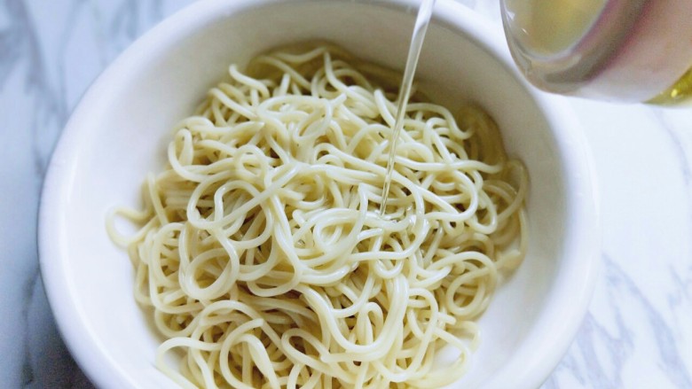 4. 淋干后放器具中,加入橄榄油拌均匀
