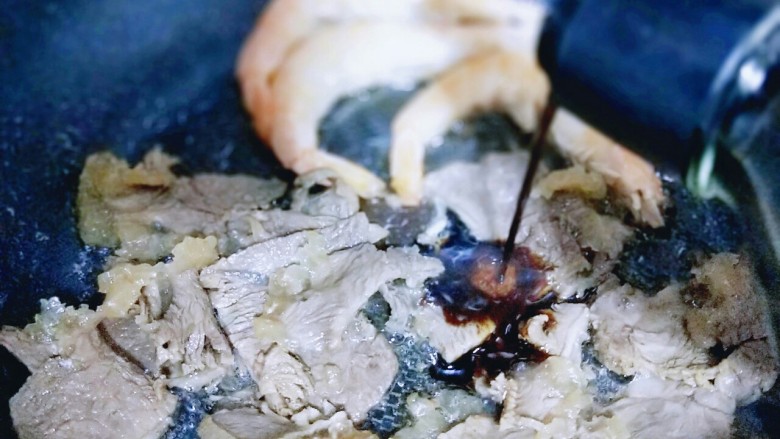 12. 煸炒均匀,至虾熟。(酱牛肉是熟的哈)