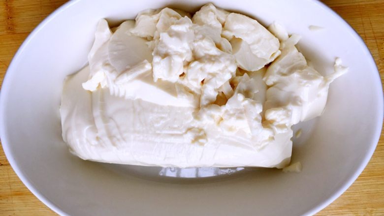 2. 内脂豆腐倒入盘中。