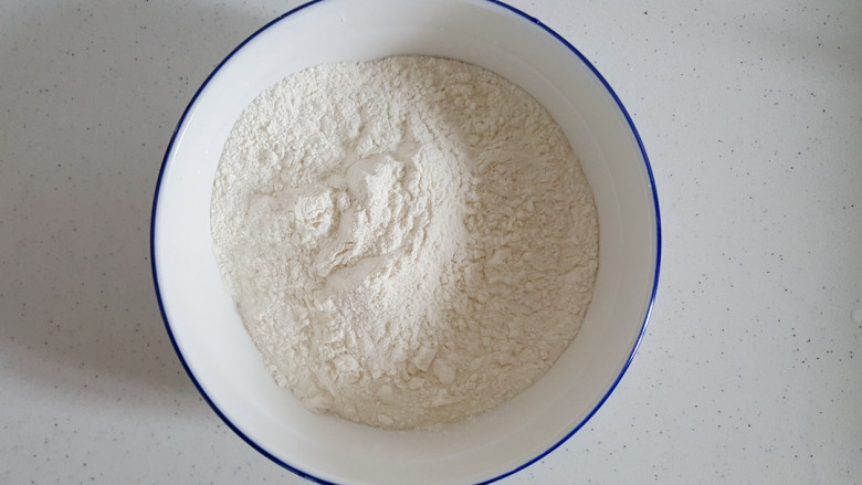 2. 用60-70度的温水慢慢地倒入面粉,搅拌。