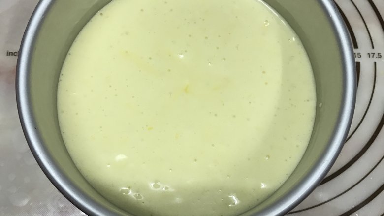 10. 将面糊糊倒入学厨6寸戚风模具中