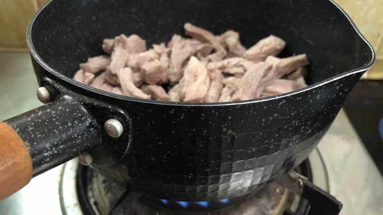 2. 猪肉切成条,看着纹路,竖着切(竖着切,做出来的肉口感会更好)