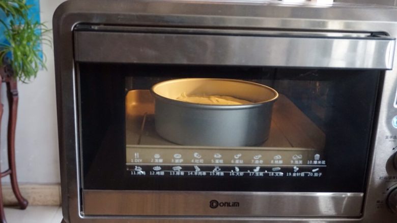 11. 放入已经提前预热到上火120度,下火140度的东菱K40C烤箱下层,烘烤60分钟左右(这里必须说明一下,烤箱预热的时间一般要10分钟以上,所以在你准备好所有材料就要开始预热烤箱了。每家烤箱脾气不同,温度仅供参考)