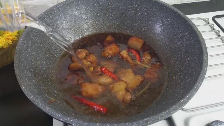 7. 翻炒几下 加水清水 没过肉