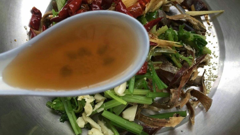 11. 撕好放焯好的芹菜