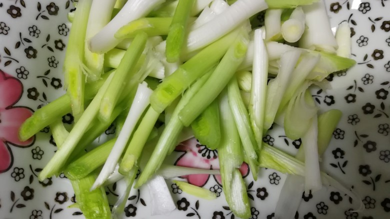 2. 大蒜斜刀切,蒜白和蒜叶分开装