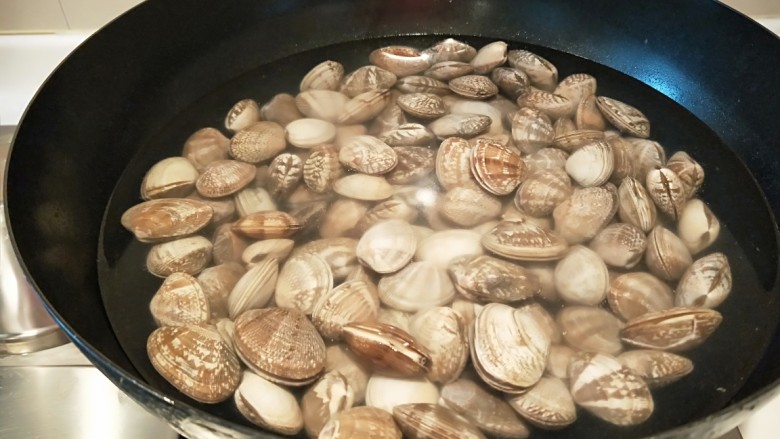 1. 买回来的花蛤放入一勺盐泡一小时,叫它吐出泥沙后在做。