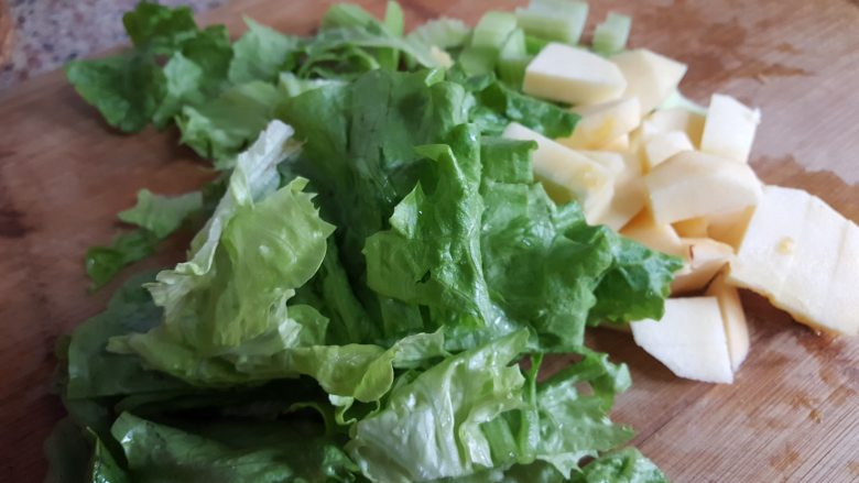 2. 把准备好的蔬菜水果切切切。