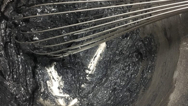 10. 分两次加入剩下的蛋白霜,翻拌加切拌的手法拌匀蛋糕糊。