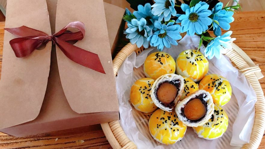 - 4.因为里面有蛋黄,所以整体的烤制时间会稍长一点,正常20分钟左右可以出炉,有馅料的话30分钟左右,看到表皮上色比较好看就可以出炉了。