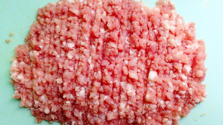 1. 先剁碎肉馅,我这剁了两百多克吧,做了七个珍珠丸子,还酿了一盘豆腐,还有这一盘水瓜~(难得这么勤快剁一次肉馅,多做几个花样咯😊)