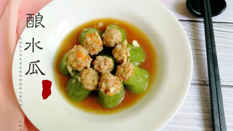 13. 依次类推,酿好的水瓜摆盘放上蒸笼,大火蒸十分钟即可