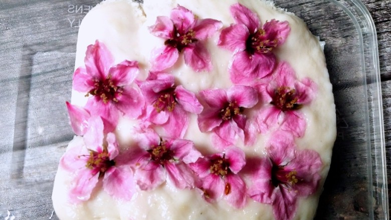 11. 整个桃花这样点缀,放入冰箱两小时。