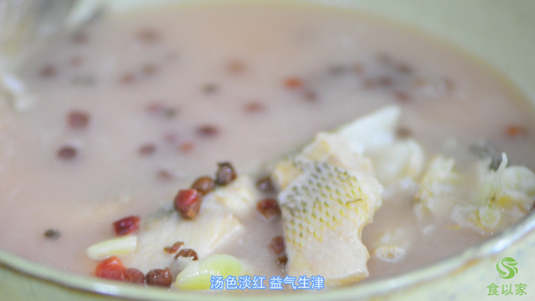 11. 转中火,继续煮15分钟,汤变淡红,鱼肉熟,放入盐调味即可。