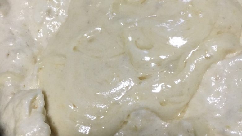 16. 先倒一半进搅拌好的蛋白蛋黄糊里
