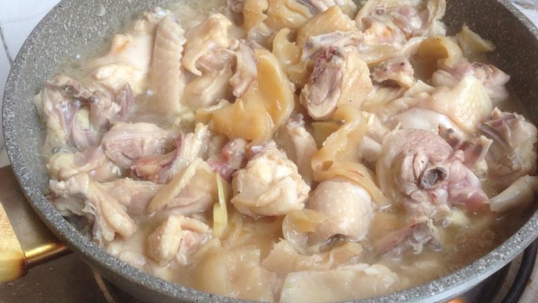 2. 花胶切小块,加入姜片,放入水中煮10分钟。