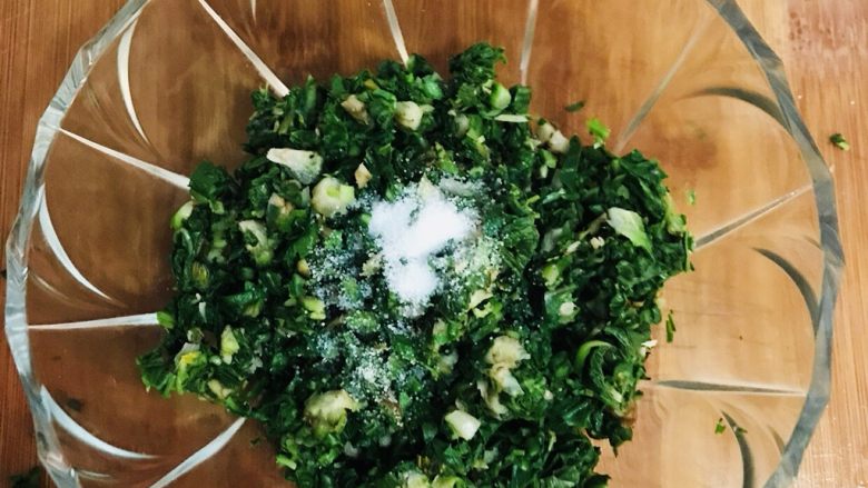 蒲公英鸡蛋饼,放适量的盐调味