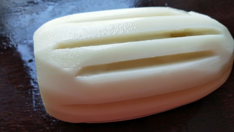 3. 苦瓜中间切开,用小勺挖出瓜瓤。