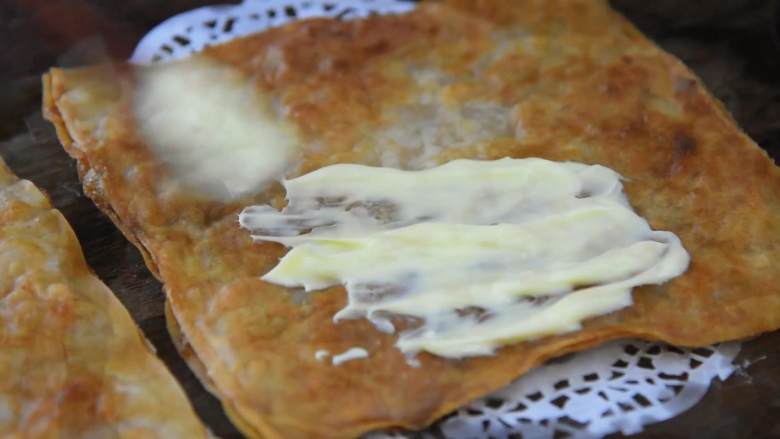 6. 表面再盖上一张春卷皮,轻轻压平。