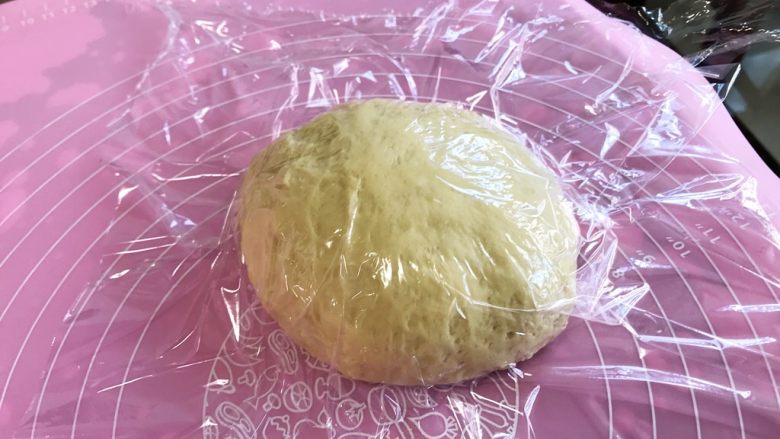 4. 发酵好的面团揉搓排气,盖上保鲜膜醒20分钟
