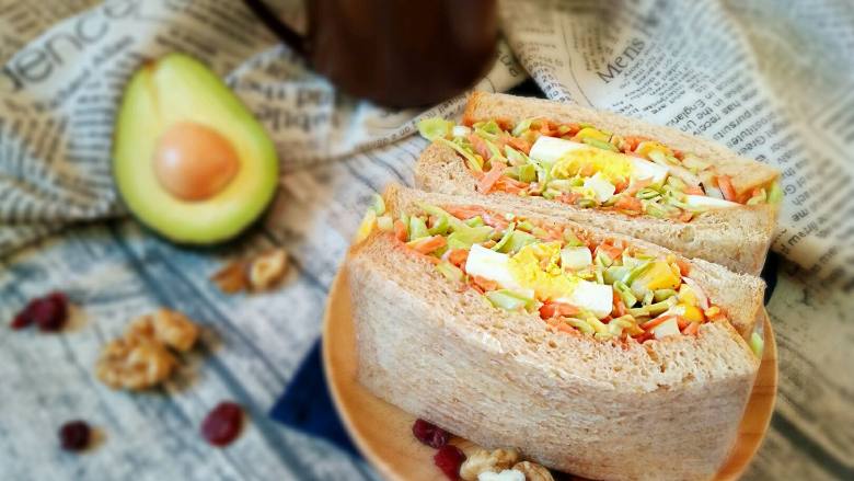 - 此三明治最大的特点是包裹着厚厚多多的卷心菜丝,也可以称为“卷心菜三明治”,感觉有春天般的味道!